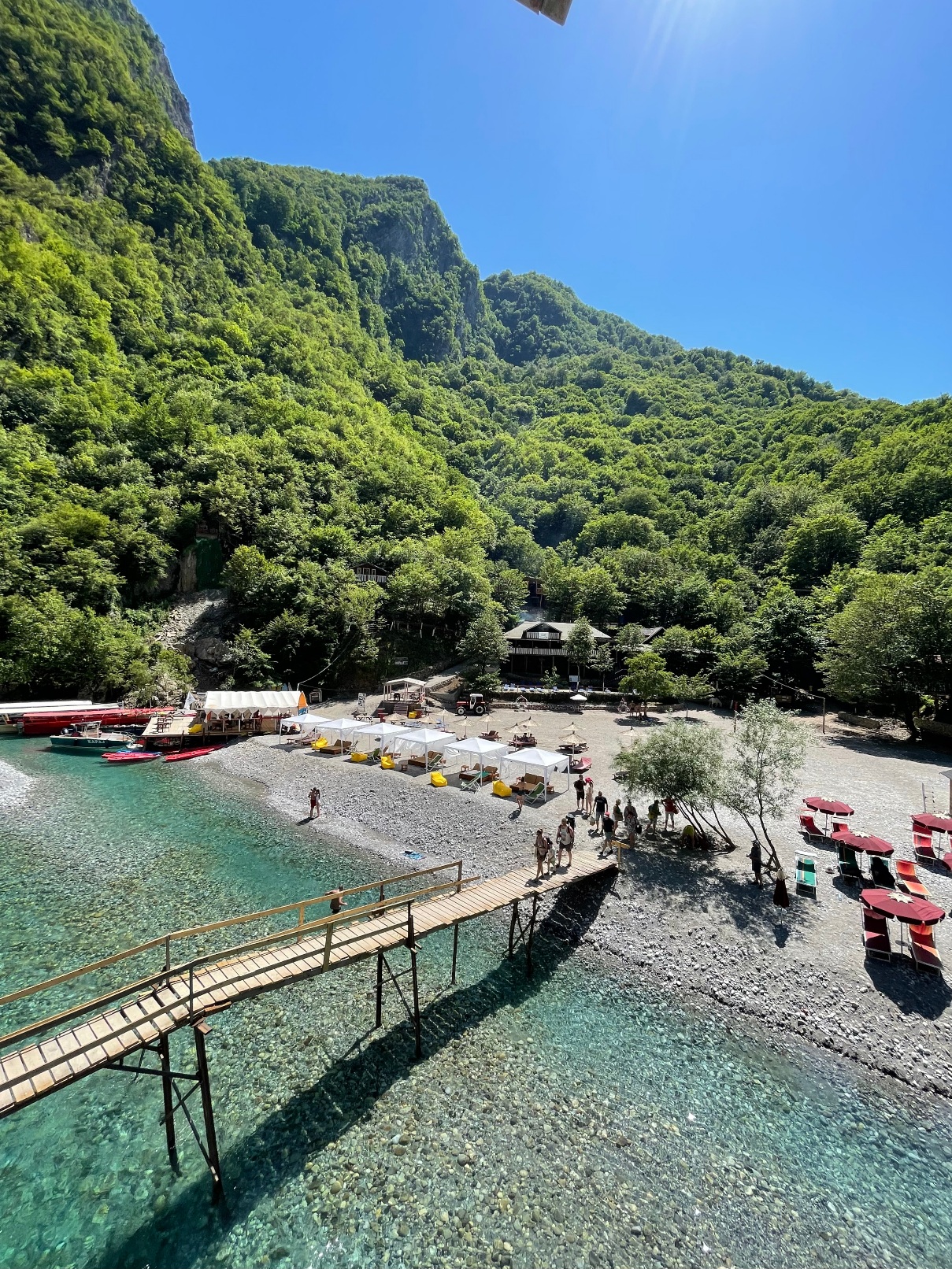At around 10:50 AM, you’ll arrive at the stunning Shala River, accessible only by boat. This remote destination, often called “the Thailand of Albania,” is famous for its crystal-clear turquoise waters and towering canyon walls.
